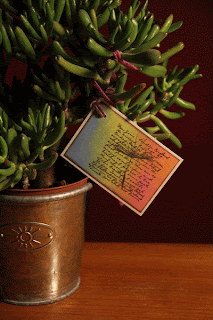 Okej. Jag börjar med att kika lite snabbt på stämplarna och insupa lukten av gummit – aaaaahh, mmmm! Sen tar jag upp ett av motiven jag har gjort och ser genast framför mig hur jag skall göra: stämpla med Watermark, embossa med klart/transparant och sen bleka med klorin. Jag kom till ”och”. I tio minuter letade jag efter klorinflaskan. Sen insåg jag att om jag lägger en sekund till på det här kan jag likaväl glömma allt vad kreativt skapande heter, för jag kommer bara bli på dåligt humör. Sagt och gjort, jag gick vidare. Med humöret på topp.