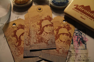 Jag är som sagt rätt nördig på ATC. Tycker det är så käckt för de går snabbt att göra (eller hur?). Men grejen är att de är lätta att förädla till ”stort” kort, om det behövs. I princip är det ju bara att limma fast på en bit kraftigare kartong och stämpla dit lämplig text. Annars passar de utmärkt som blom- eller paketkort.